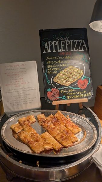 青森なのでバイキングではアップルシャーベットやアップルジャムがありどれもおいしかったです!特にアップルピザがめっちゃ美味しくて、とりに通いました!