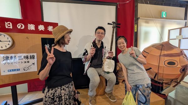弘前城の近くで三味線の世界チャンピオンのお兄さんの演奏を聞きました♬